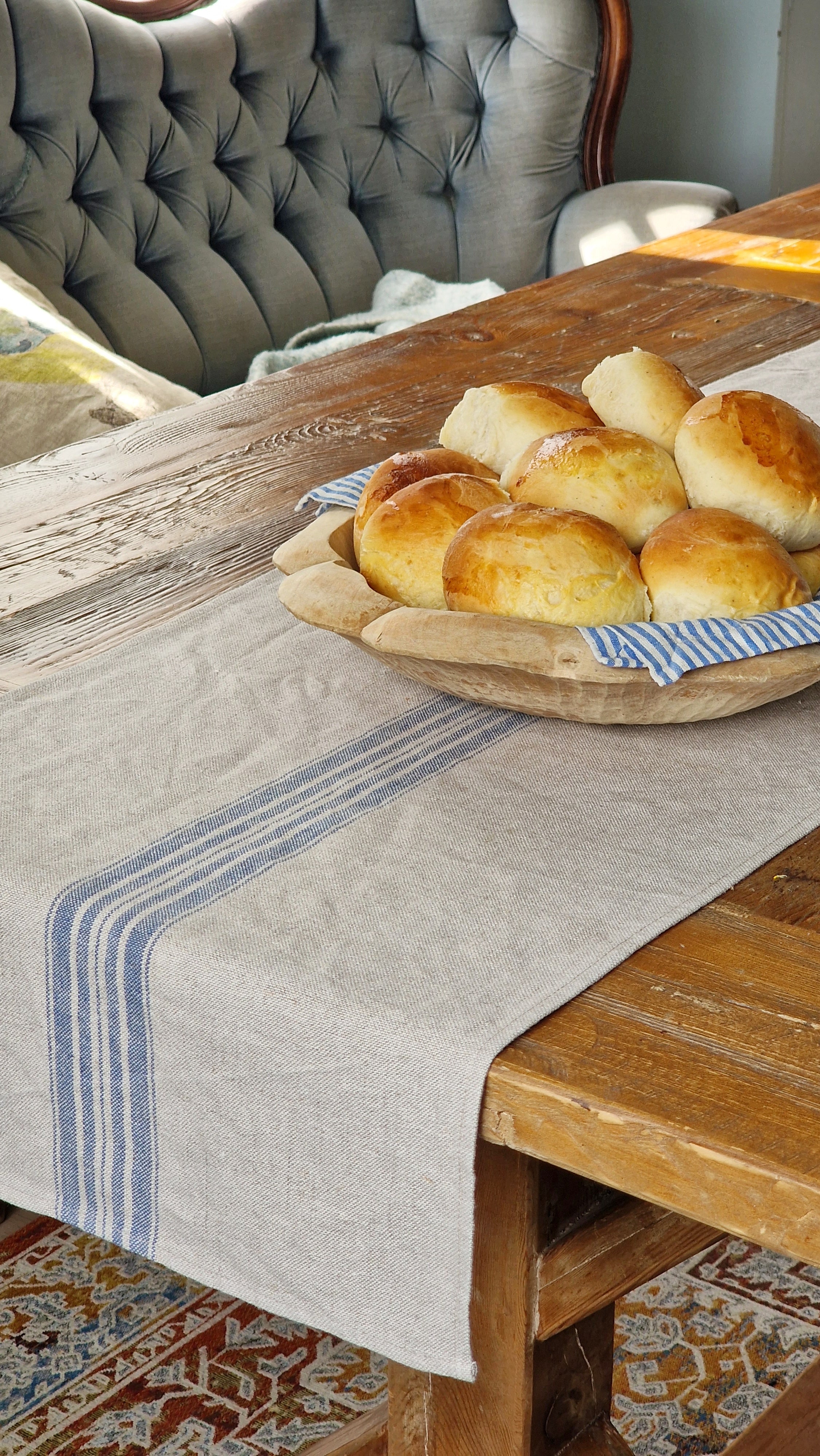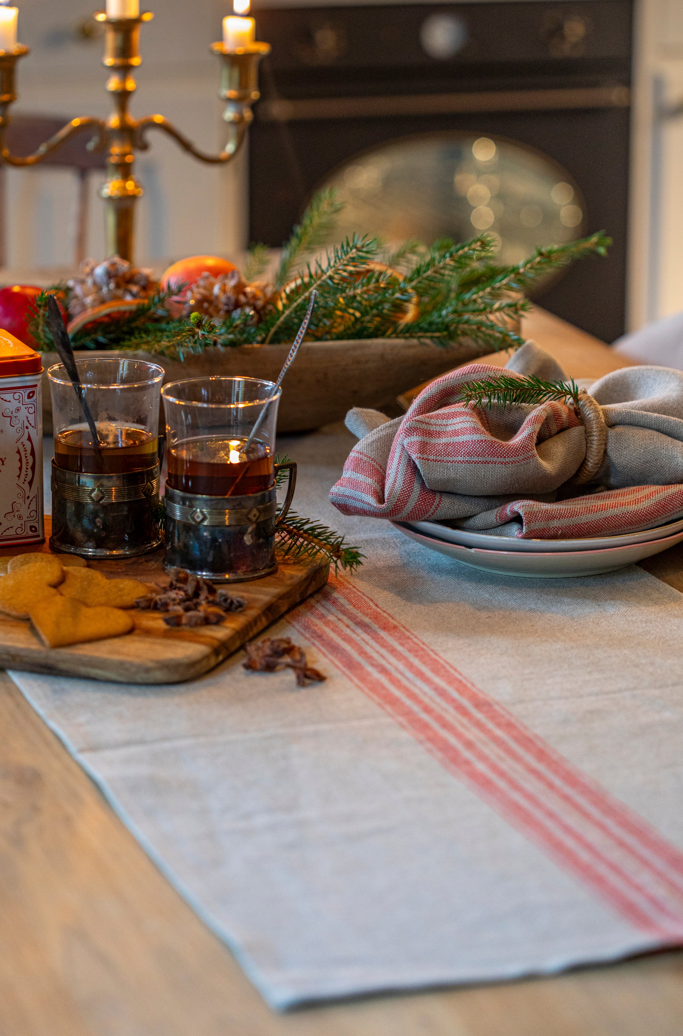 Astrid er fjorårets nyhet, en rustikk og grov linløper i nydelig linfarge med smale striper.