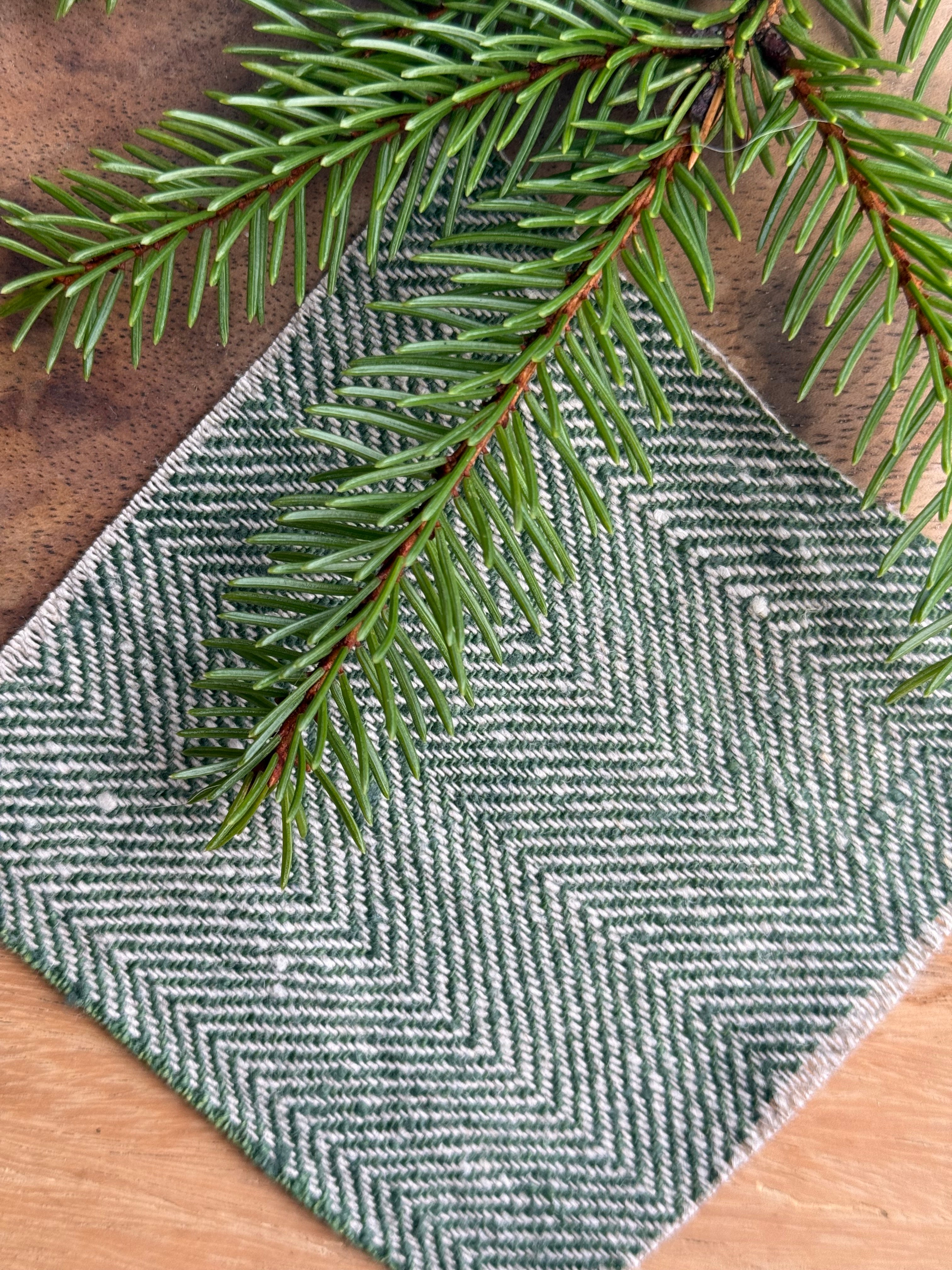 Rustikt kjøkkenhåndkle i grov lin med klassisk fiskebeinsmønster.