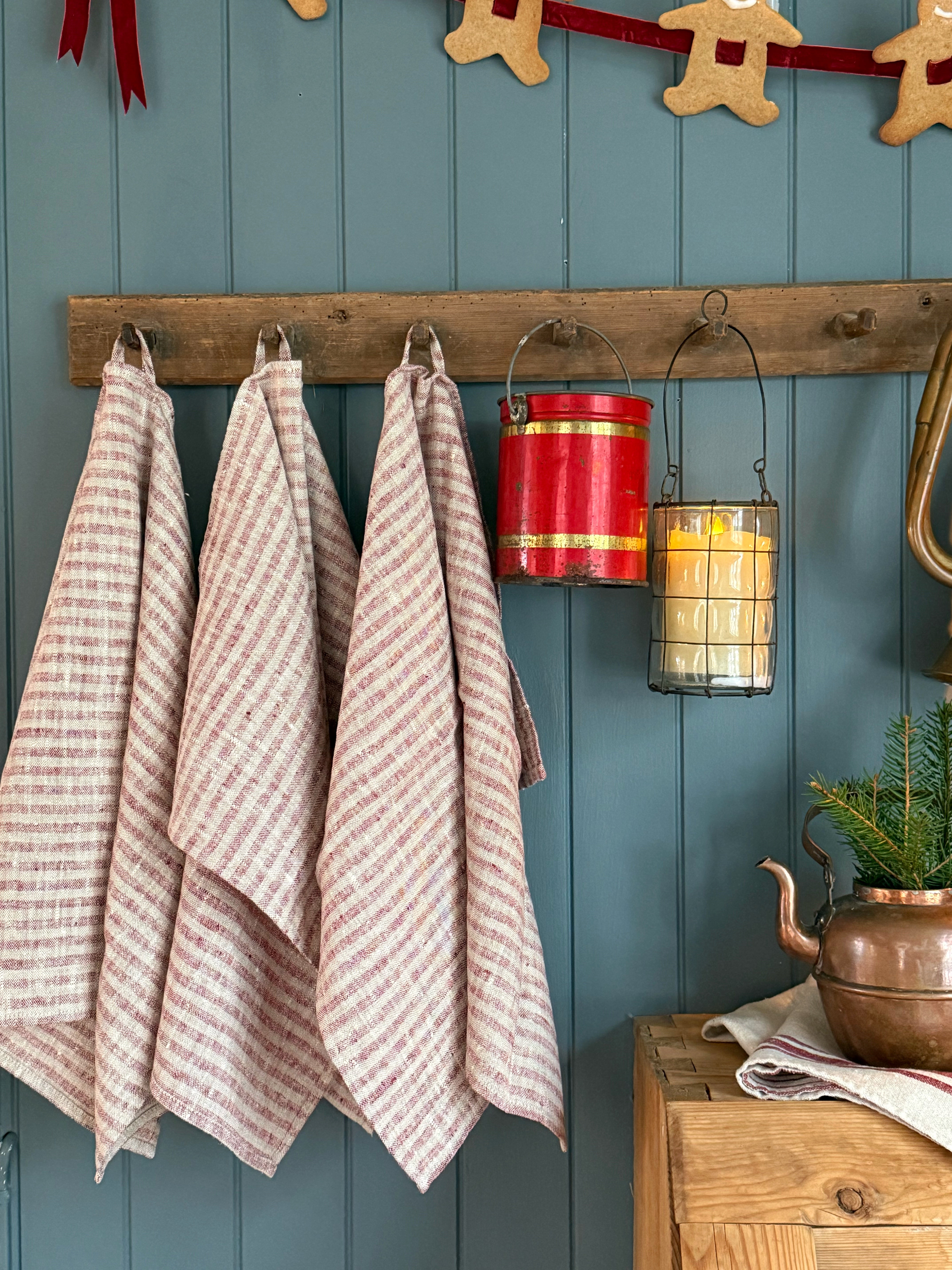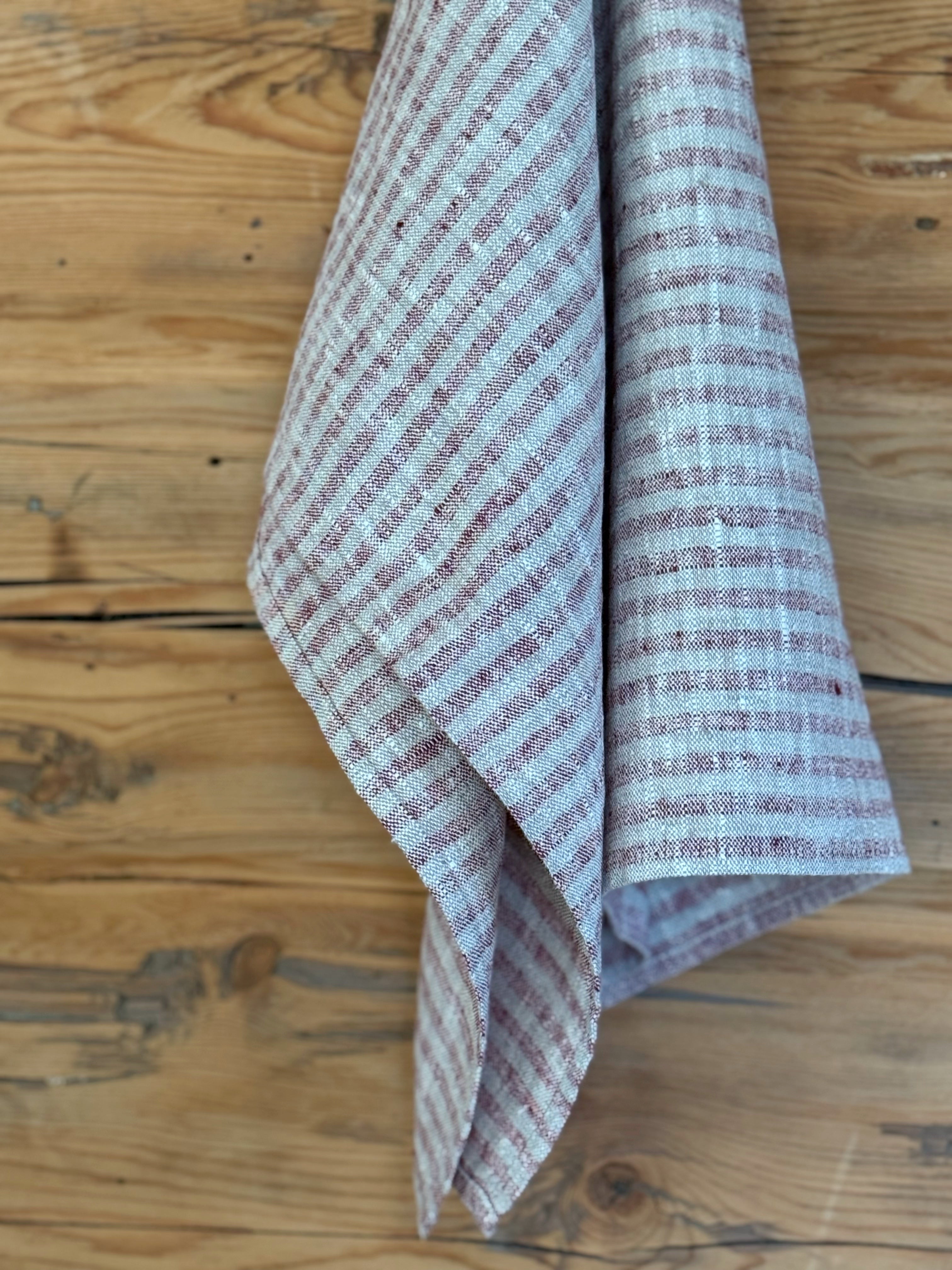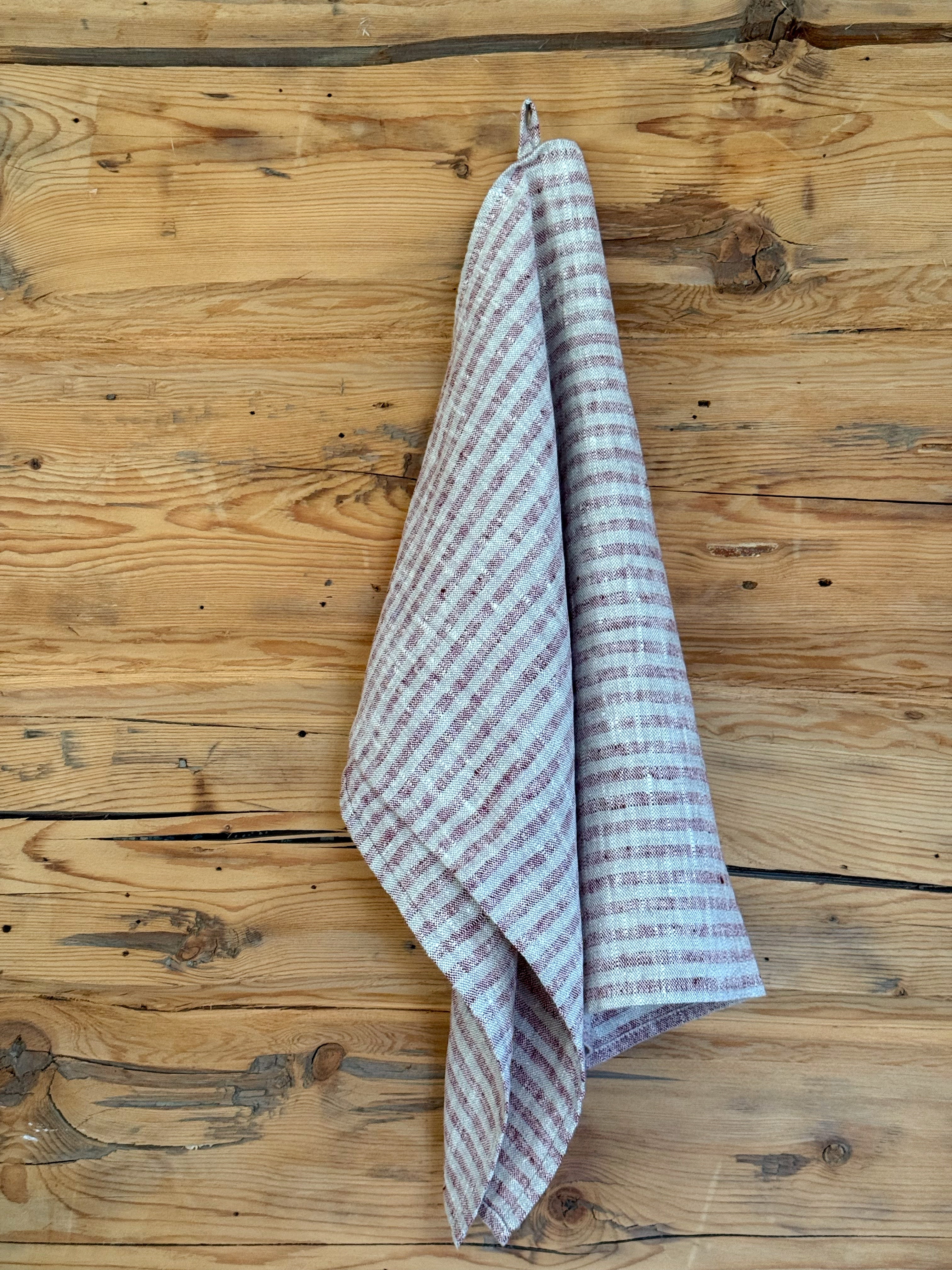 Et gjensyn med vår kolleksjon Molly, denne gangen med en dyprød farge kombinert med naturfargede, smale striper.
