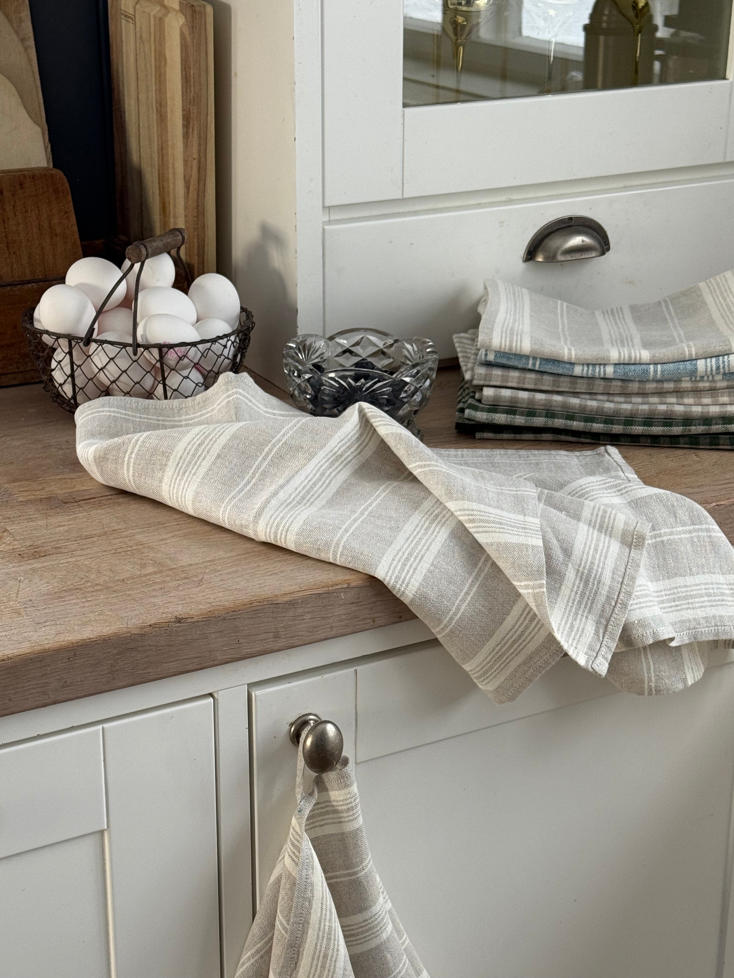 Nicoline linhåndklær har i tillegg en så kraftig kvalitet at de også kan brukes som bordbrikker