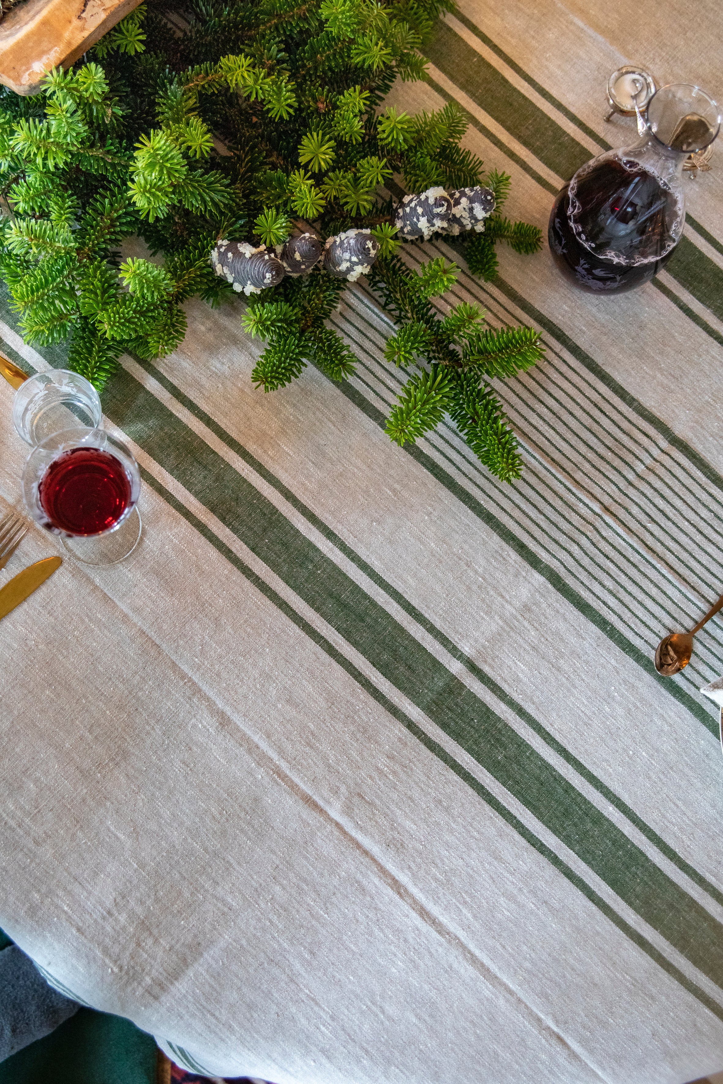 Naturfarget med skogsgrønne bolsterstriper